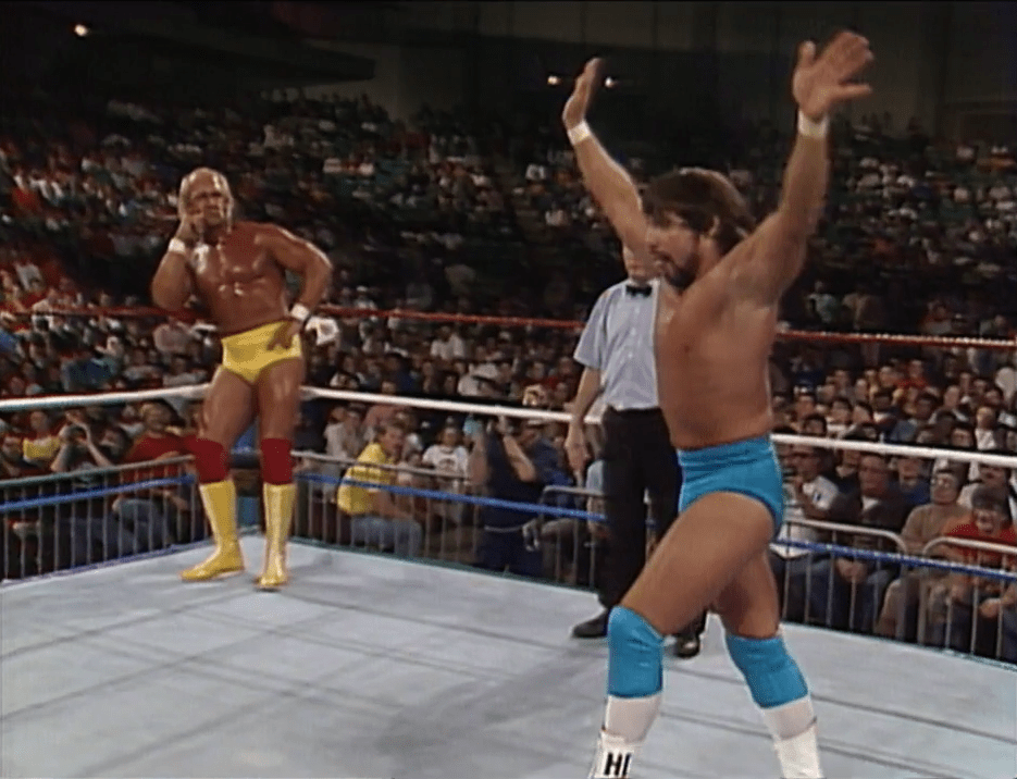 One of the most memorable and talked about Hennig moments however…occurred in the WWF on Halloween night…October 31st, 1989. A Tuesday taping for Saturday Night’s Main Event that aired on November 25th of that year. Mr. Perfect’s manager and occasional tag team partner…the former ‘Leapin’ Lanny Poffo aka The Genius took on WWF champion Hulk Hogan one on one. In a shocking result, the Genius defeated the Hulkster via countout after outside interference from Mr. Perfect.