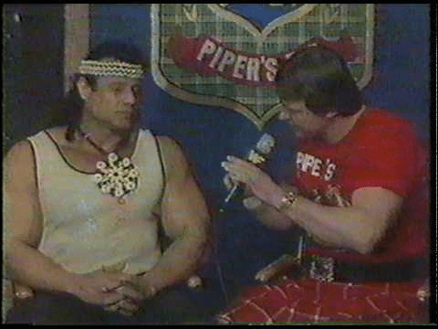 From the get go for this new segment, Roddy Piper again did not let Snuka get a word in edge wise. Instead, Piper kept pulling the microphone away from Snuka and talking over him before he could speak. In reality, WWF management knew that Jimmy Snuka was not a great talker and that Piper would be the one responsible for generating the build up. The Hot Rod brought out a grocery bag and inside it was a few items to make Snuka feel more at home in the Fiji Islands.
