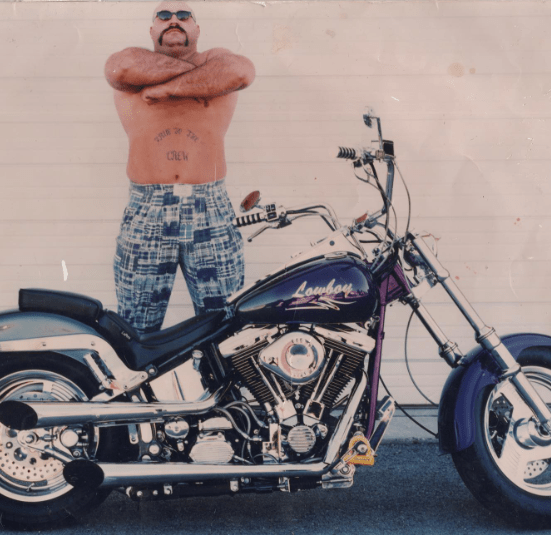 Tracy K: Johnny was a big strong guy built like a brick shit house and was very intimidating. He only had one tattoo of an eagle on his left shoulder when I met him. 6 Foot, shaved round head, handle bar stache but around me friends and family, he always had a huge smile, smirk, or some sort of mischievous grin. Everyone always stopped what they were doing when he entered a room. That alone, was very powerful. But he was so funny, always joking inappropriately about everything. But if you were an elderly lady or a single mom needing help, he would buy your groceries, open a door, get you a taxi if you needed to get home, slap a girl’s abusive boyfriend around in front of her while he was screaming scared shitless, or punch someone out for you he would do that for you in a heartbeat.