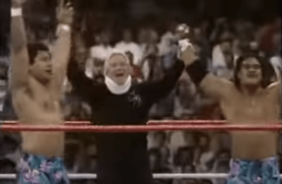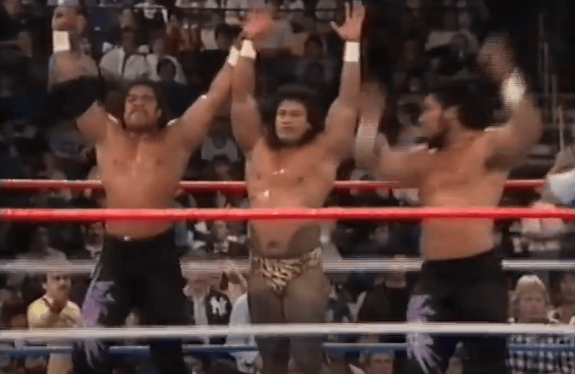 That is when McMahon added journeyman wrestler Sivi Afi to the group as the third member of the Islanders. Afi was renamed High Chief Afi and patterned his new gimmick after High Chief Peter Maivia. So much so, Afi supposedly spent his own money getting fully tattooed from his waist down. Tama said that High Chief Afi didn’t really connect as a tag team partner. They wrestled one TV taping as a trio, before the Islanders suddenly split up.