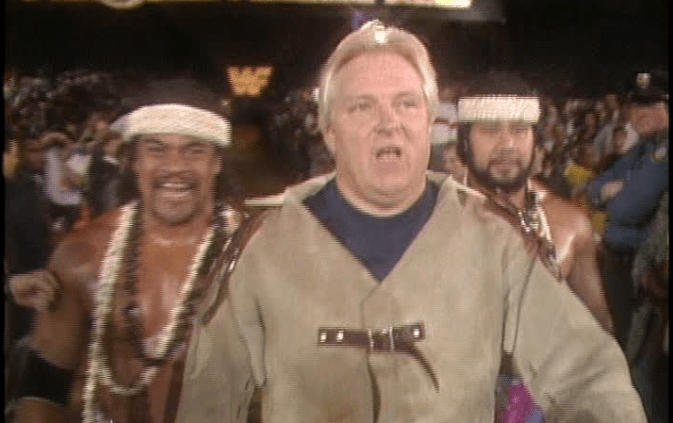 Their names were changed to Haku (King Tonga) and Tama (The Tonga Kid) collectively known as ‘the Islanders.’ Initially, the Islanders were pushed as babyfaces and began a feud with King Kong Bundy and Big John Studd. Unfortunately, the feud was cut short after Studd quit the company to try and pursue a country music career. The Islanders continued to meander on the mid card with varying results. With the team struggling to create a fanbase, the main problem was Haku and Tama were not very strong on promos. Vince McMahon made the decision to turn Haku and Tama into heels and give them a manager.
