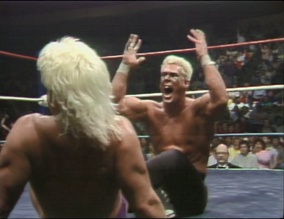 It was the booker of Jim Crockett Promotions in Dusty Rhodes who saw real potential in Sting as a babyface singles wrestler that could be marketed as a future star of the company and was pushed as so. Sting’s growth in the NWA was slow, but steady as he feuded with several heels battling over secondary titles like the NWA world Television title. His biggest break and what made him into a bonafide star with Crockett was when he main evented the very first Clash of the Champions and challenged ‘The Nature Boy’ Ric Flair for the world heavyweight title. Sting and Flair put on a classic match that lasted for the entire 45 minute time limit. The match was a proving ground to fans that Sting belonged in the main event conversation for the promotion moving forward.