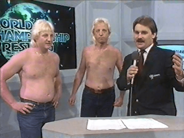 In the past, I’ve often written of my affinity for the preliminary jobbers of yesteryear. Guys that looked like they were literally plucked off the street before a TV taping…given wrestling attire and asked to make others look great. Guys that had no wrestling training, pasty white skin with bad hair cuts and little to no definition physique wise. Bill and Randy Mulkey fit that description to a tee. The difference between the Mulkey brothers and every other jabroni in the business, however, was that the Mulkeys grew a huge following. They became cult like heroes down in the mid-Atlantic region of the country. No gimmicks, snazzy catchphrases or 5 star matches, just an appreciation for their passion and commitment to pro wrestling. It was and is known as “Mulkey Mania”, a take off of the more widely known Hulkamania and it does indeed exist to this day.