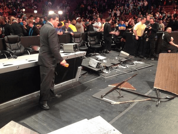 Now you know the legendary history of the WWE’s Spanish Announce Table. A table that has seen and felt its fair share of tremendous high spots and “Holy Shit” maneuvers. To those announcers who are brave enough to sit at that table…always be on alert…be careful of falling objects. Heck, if the WWE can have a celebrity wing of the WWE Hall of Fame…there should be a separate wing soley for the Spanish Announce table…heaven knows it paid its dues.