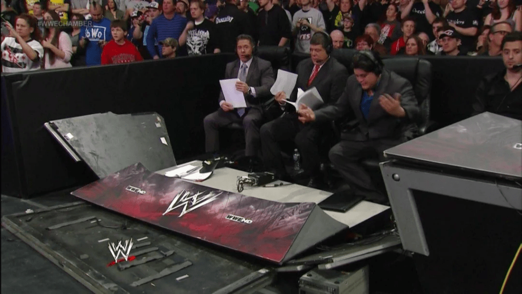 It really seems that you can’t go one single, solitary WWE pay per view or major event…without a table spot. To be more precise…it is hard to imagine a WWE event without the famed Spanish announcers table being a part of the action. The Spanish announce table is just as important as the particular event itself. Whether it was Mankind falling off the Hell in the Cell cage onto the Spanish table…or someone like Daniel Bryan, Randy Orton or even John Cena going through it…it has seemingly become like second nature.