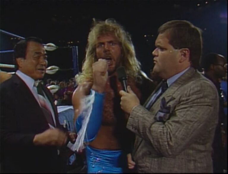 Hiro Matsuda had a good career as both a wrestler and as a trainer, but didn’t nearly have the microphone skills and charisma that Dillon offered. Instead of having Matsuda simply as the new manager of the Four Horsemen….Scott decided to have Matsuda represent a Japanese company called the Yamazaki Corporation that bought out the remaining Horsemen contracts. The idea for the Yamazaki Corporation came from the real life news items of rich and powerful Japanese Companies buying out American businesses.