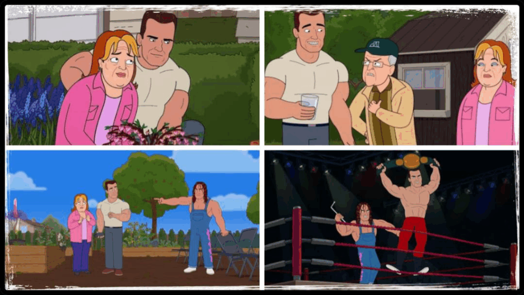 -In the Animated Series Corner Gas, Brent and Hank find out that their favorite wrestler is now a gardener. Lance Storm voices a professional wrestler who also hosts a popular gardening podcast named Lance Fury in the episode titled “Sound and Fury”. Bret Hart and Trish Stratus also voice characters in the episode. ‘Corner Gas’ is available on DVD & YouTube.