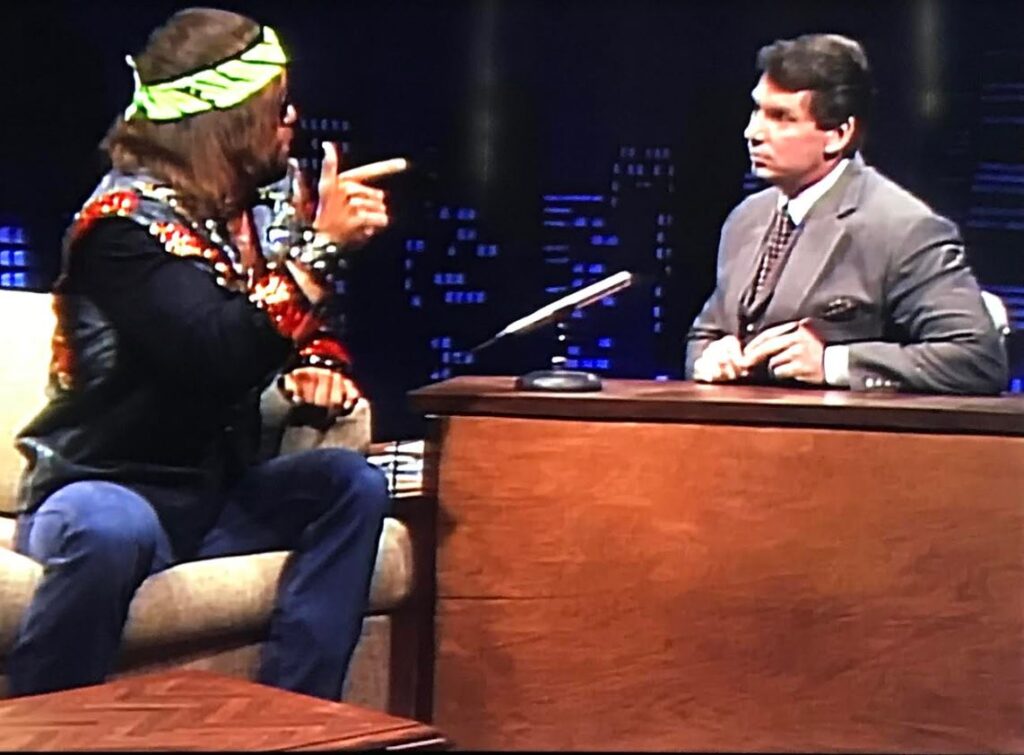 Randy Savage was a special guest on WWF’s interview program Tuesday Night Titans. A few of the managers (Hart, Heenan and Blassie) were there in attendance to try and lure the Macho Man to their stable. They each had an allotted time to make their pitch to sign Savage. Bobby Heenan promised Savage would make money and shop at the finest stores in Beverly Hills. He would rub elbows with movie stars and drive in limousines all day and all night. Jimmy Hart promised to be a low budget manager, who wouldn’t charge Randy an arm and a leg like Heenan would. Bobby Heenan responded to Hart’s offer to Savage by asking, “Do you want to shop in Beverly Hills or at Kmart?”