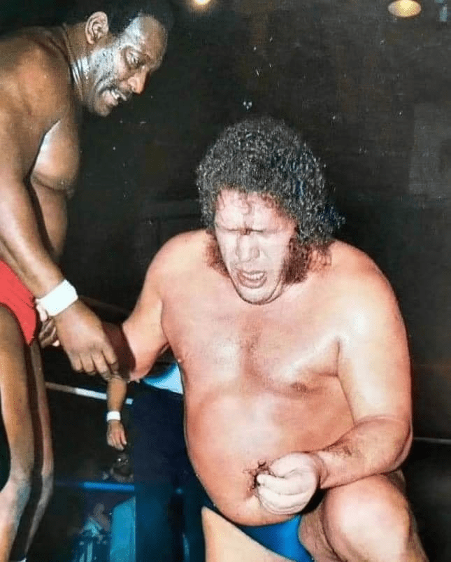 It was at a WWF television taping in November of 1984 at the Mid Hudson Civic Center in Poughkeepsie, New York. Andre was scheduled for a tag team match against Bobby Heenan’s stable which consisted of Ken Patera and ‘Big’ John Studd. Andre’s tag team partner for the evening was Special Delivery (SD) Jones. Studd was involved in a battle for “Giant Supremacy” with Andre over who was the true Giant in professional wrestling.