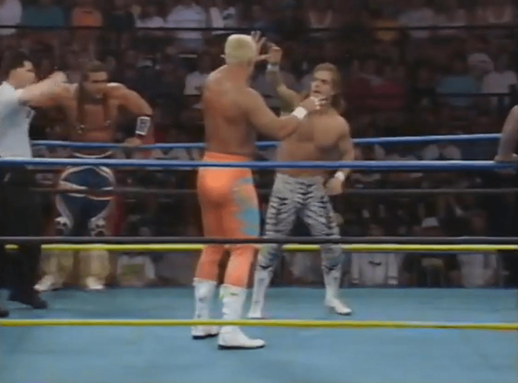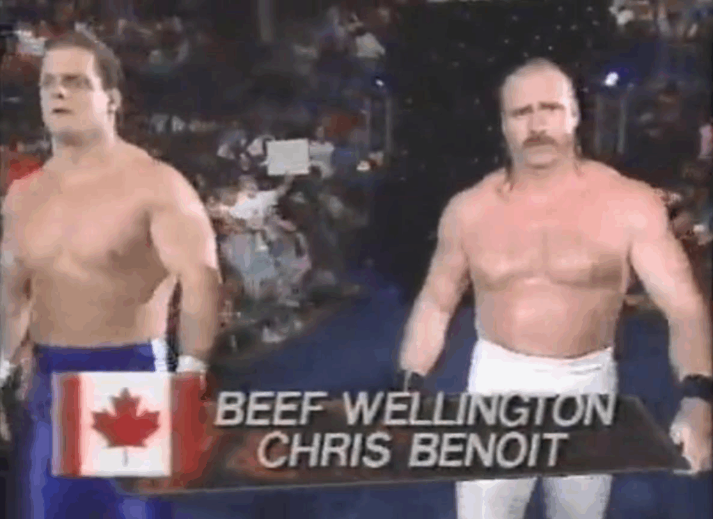 In 1993, Chris would once again team up with good friend and partner Biff Wellington in a match against “Flyin” Brian Pillman & Jushin Thunder Liger. Chris & Biff had been billed backstage in Japan as the “MEGA DOSES” for their massive intake of anabolic steroids. This match would take place for WCW at the Clash of The Champions. Benoit was introduced with much praise to fans at home on TBS by Jim Ross as being an “international superstar” and “former IWGP Junior Heavyweight Champion”, even coming out to the Canadian National Anthem. His wrestling prowess and success in the Super-J cups had North American fans enthralled. A lot of the hardcore fans considered Chris “The best in the world”. But Chris said “he didn’t consider himself the best, as he considered wrestling an art form”. This international cruiserweight bout was Bill Watts’ first step into restoring legitimacy to WCW as he invited teams from around the globe to participate in a tournament for the NWA World Tag Team Titles. And also, NJPW wanted someone that they trusted and knew could make Liger look as good as possible when sending him over state side.
