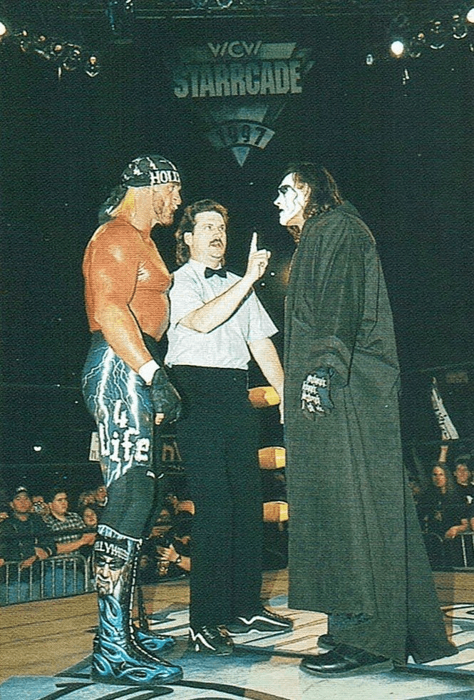 Sting was opposed to the nWo and was ready to fight a one man war against the evil of the group. He targeted Hollywood Hogan and his WCW world title. The epic battle would take place at the aforementioned date at Starrcade ’97.