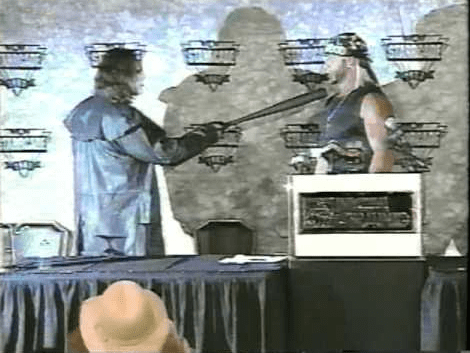 Sting applied the Scorpion Death Lock on Hogan who made matters worse as he never really tapped out..but instead verbally submitted. That made the finish look even weaker. So what happened? Did Nick Patrick truly screw up or was he instructed to legitimately screw Sting? According to Eric Bischoff, he felt it was just a misunderstanding and if he thought it was intentional…he would have fired Patrick on the spot. Nick Patrick contended years later..he was just mixed up and confused because he was being told different things about the finish from Bischoff, Hogan and Sting.