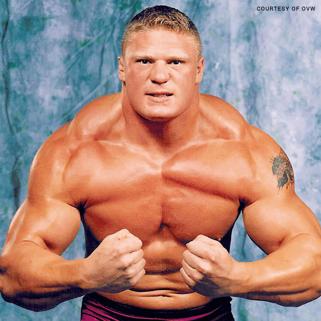 Brock Lesnar wrestled for OVW from 2000 to 2002 under his real name. He debuted on the main roster in 2002 still under his real name. He was immediately paired with manager Paul Heyman and became the youngest WWE champion in history at age 25. He is a former King of the Ring winner….a 1 time Royal Rumble winner…a 4 time WWE/World champion and the man selected to end the Undertaker’s undefeated streak at Wrestlemania 30.