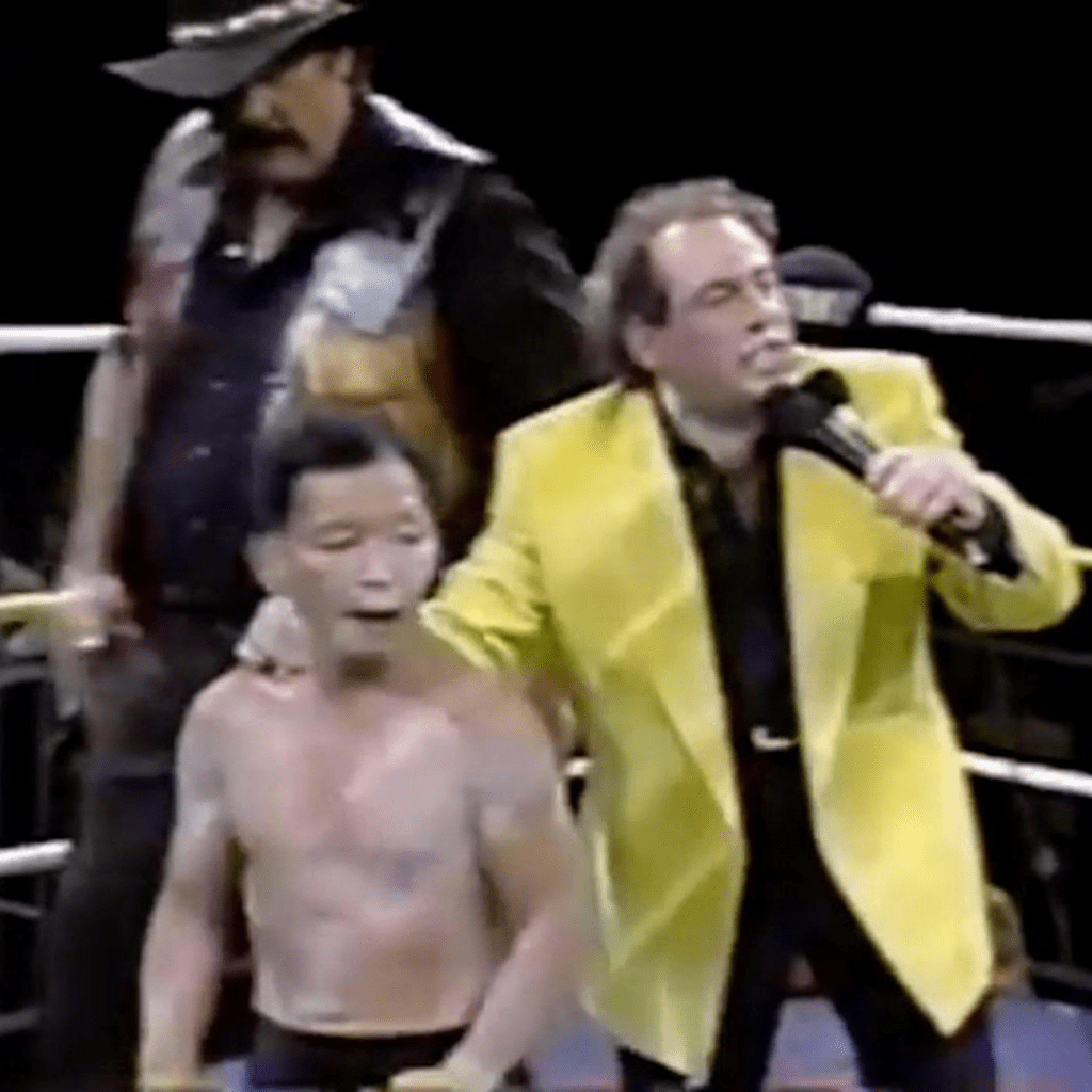 Another example was Herb Abrams interviewing midget wrestler Little Tokyo while visibly drunk on live TV. Abrams went as far as slurring to Little Tokyo that he (Abrams) understands the Japanese culture because he was at one time…”married to a Jap.”