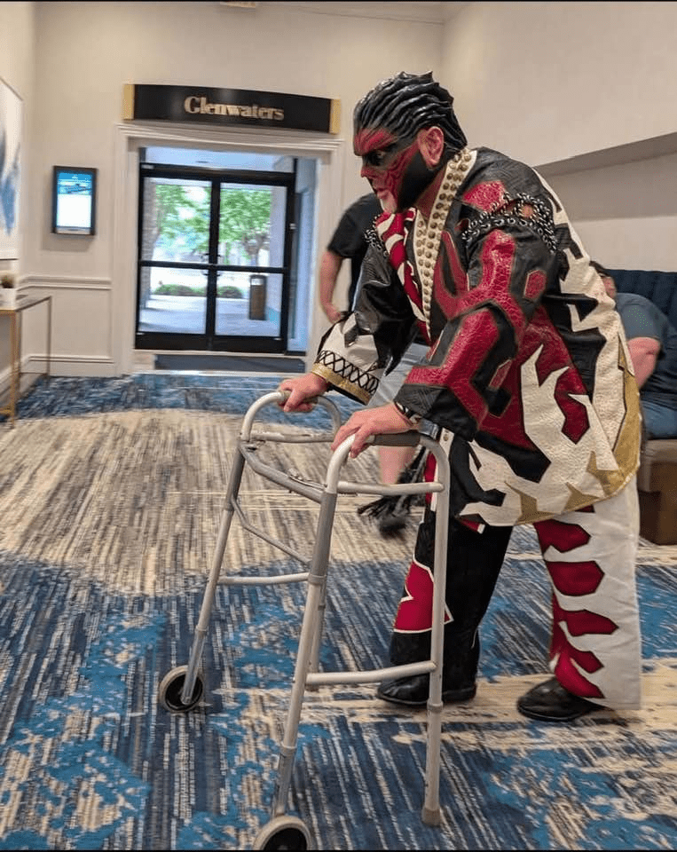 A recent pic of the Great Muta. These wrestlers truly put their bodies on the line day in and out for our entertainment.