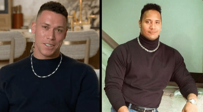 Newly crowned American League MVP Aaron Judge doing his best to channel old school Rock Dwayne Johnson.