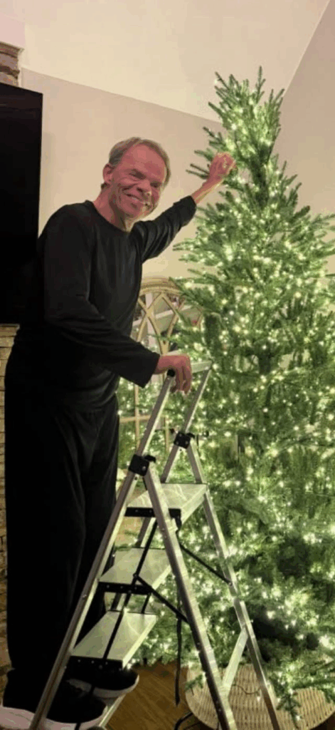 Lex Luger sanding on a ladder decorating his Christmas tree. DDP is a miracle worker!