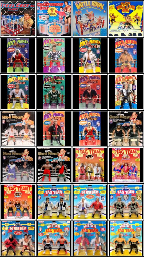 Many of the figures came with robes, clothing, belts, and other accessories. Also released were Mini Mashers, a Battle Royal Ring/Playset that included 7 figures, a Championship Belt, and the AWA All-Star Wrestling Ring before ceasing production in 1987. Some of the more iconic figures from this line are Nord The Barbarian,The Fabulous Freebirds, Midnight Rockers(Marty Jannetty & Shawn Michaels), Ric Flair, Rick Martel, Sheik Adnan Al-Kaissie, and The Road Warriors with Paul Ellering. They have become pretty popular again over the last few years with collectors and have become quite valuable. The Nord The Barbarian figure from the Remco AWA ‘Mat Mania’ series is one of the most valuable wrestling toys of all time, as one that was Mint on Card sold for $4200! A loose one excluding accessories is currently up for auction for $1200. Others that are extremely rare and pricey include Boris Zhukov, Buddy Rose, Shawn Michaels, & Marty Jannetty.