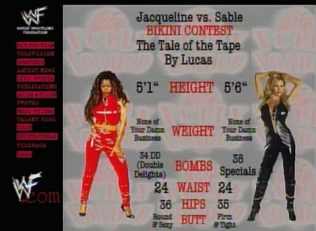The bikini contest was a huge success for the WWF and had many young teens who recorded the broadcast to wear out their VHS tapes by constantly rewinding and pausing their tapes to see highlights of the contest. The overall positive reaction to the segment also helped inspire McMahon to relaunch the WWF women’s title in the company. A title that was DOA, ever since 1995 when Alundra Blayze and several other talents were fired and she decided to show up on Nitro and throw the WWF women’s title in a trash can. In September of 1998, Jacqueline defeated Sable in a match to become first champion of the newly revived title.