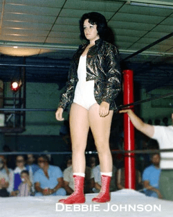 Debbie Johnson was a second generation wrestler, the daughter of wrestler Dottie Downs. Both mother and daughter were trained and wrestled for the Fabulous Moolah. Debbie’s career lasted from 1970 until 1975 before retiring from the business. Johnson revealed that she became pregnant in 1973, much to the chagrin of Moolah and her own mother Dottie.